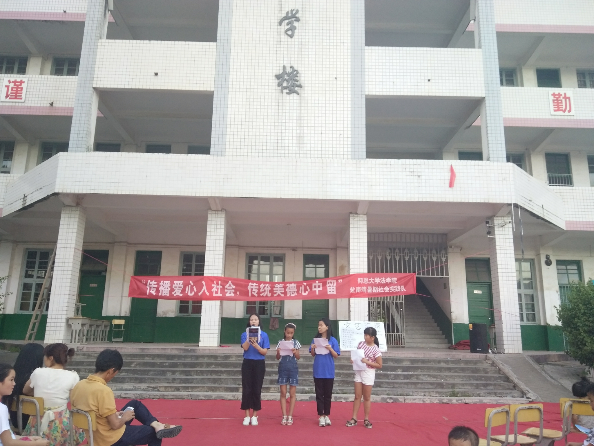 为了感谢实践期间汤坑村村民对实践队成员的帮助与关爱,yl23455永利集团赴南靖实践队于7月19日举办了一场小型文娱汇演来感谢大家。莅临汇演现场的有:汤坑村党支部书记张志猛、汤坑村村长、计生会会长和汤坑小学教师石老师。