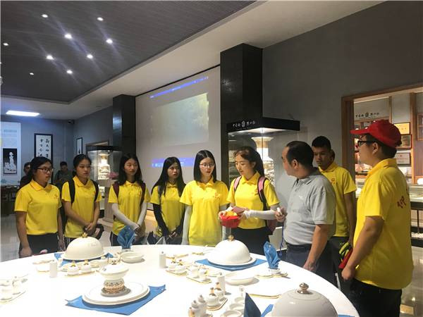 为弘扬陶瓷文化,助力陶瓷产业发展。7月19日,yl23455永利集团赴德化实践队前往中国白艺术宫——仁海艺术馆参观传统瓷雕,会馆负责人陈仁山热情招待了实践队员。