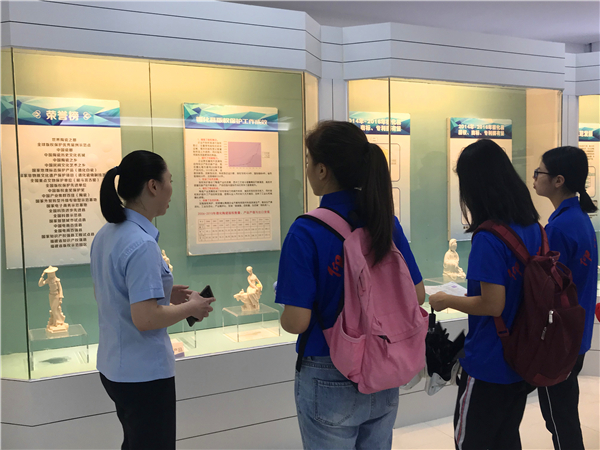 活动中,施小蓉向队员介绍知识产权保护“德化经验” 概况、发展历程、相关帮扶措施以及版权保护工作成效。期间,法院工作人员还带领实践队参观德化陶瓷知识产权保护基地,向队员介绍知识产权行政保护、司法保护、行业保护的相关内容,并向实队员讲解知识产权案件中存在的争议焦点和执法监管难题。据悉,德化陶瓷知识产权保护教育基地是全国第一个由法院建立的陶瓷知识产权保护教育基地。