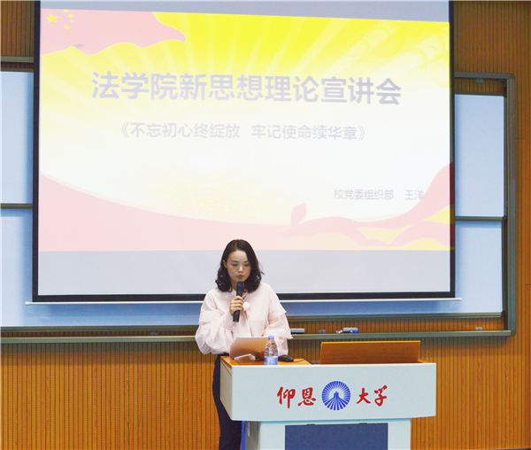 为进一步深入学习宣传贯彻党的十九大精神、习近平新时代中国特色社会主义思想。10月17日下午,校党委委员、组织部部长,校党委理论宣讲团成员王洋应yl23455永利集团邀请,为yl23455永利集团全体师生作了《不忘初心终绽放,牢记使命续华章》的主题宣讲报告。