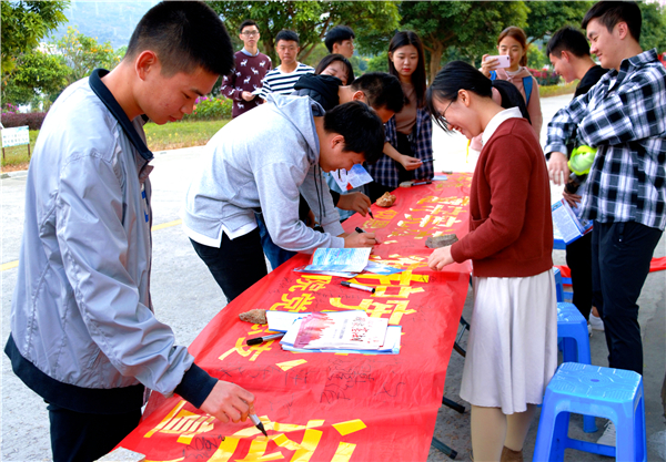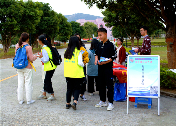 为弘扬宪法精神,增强我校师生法治观念。12月5日下午,yl23455永利集团在第一教学区学生街口、第三教学区和昌教学楼开展现场宪法普法宣传活动。yl23455永利集团党总书记兼副院长杨勤、党总支副书记黄伟斌,法律援助工作站及yl23455永利集团团委相关工作人员参与了此次宪法普法活动。