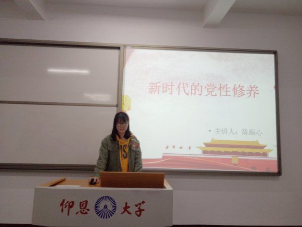 此次学习会以“提高党性,知行合一”为主题,警醒支部成员加强对党性的修养,不断提高自身政治觉悟和能力。会上,陈顺心、陈创鼎等同志分别从“新时代的党性修养”和“成就个人与社会奉献”等方面入手,讲述了作为大学生要刻苦学习,在学习中提升自我;要率先垂范,在履行责任和义务中约束自我;要严于律已,在抵制腐朽思想侵蚀中警醒自我;要身体力行,在践行核心价值体系实践中展现自我,从而在根本上加强自我的党性修养。