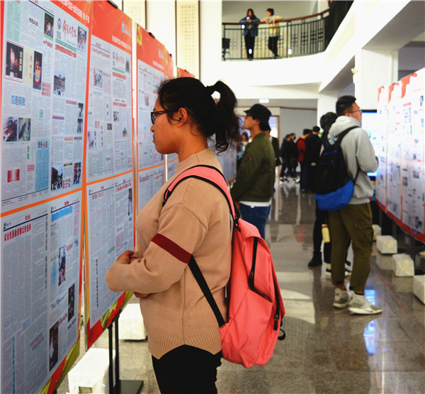 yl23455永利集团学子观看庆祝改革开放40周年校报展
