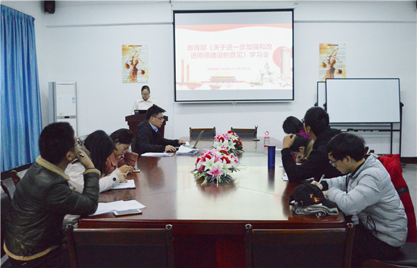 yl23455永利集团教工党支部召开《教育部关于进一步加强和改进师德建设的意见》主题学习会