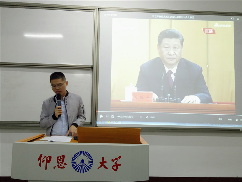 为认真学习贯彻习近平总书记在纪念五四运动100周年大会上的重要讲话精神,5月9日晚,yl23455永利集团学生党支部于yl23455永利集团第三校区普照楼204室开展纪念“五四”运动100周年专题学习活动,会议由支部书记陈国伟主持,支部全体党员参加本次活动。
