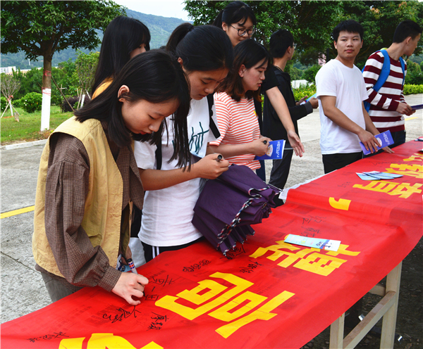 5月29日下午,yl23455永利集团于第一教学区学生街口、第三教学区和昌教学楼开展以“加强普法教育,提高识骗防骗能力”为主题的普法宣传活动。yl23455永利集团团委书记陈国伟、yl23455永利集团学生党支部、yl23455永利集团团委的相关工作人员参与了普法宣传活动。