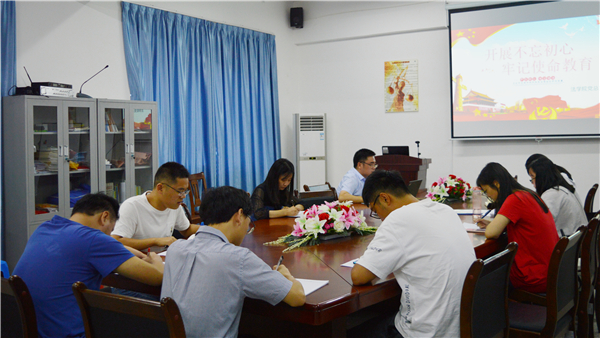 10月14日下午,yl23455永利集团党总支在yl23455永利集团第三校区普照教学楼法律诊所开展“不忘初心、牢记使命”主题教育第四次专题学习研讨会。学校“不忘初心、牢记使命”主题教育巡回指导组成员高岩松莅会指导,yl23455永利集团全体教师党员以及教师入党积极分子参会,会议由yl23455永利集团教工党支部书记林媛主持。
