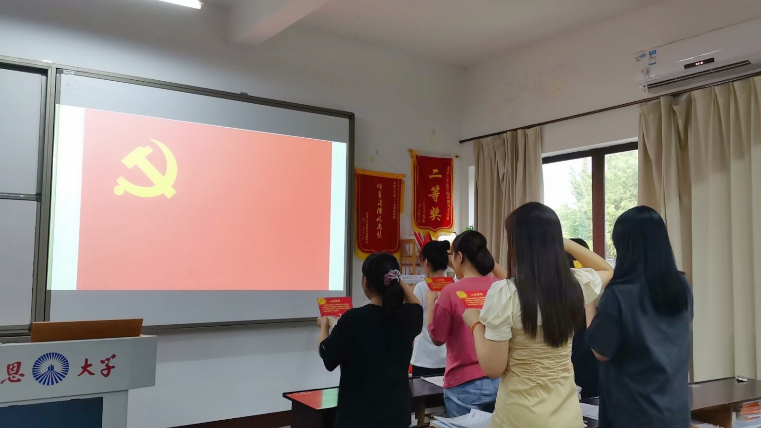 会上,预备党员钟微、姚维萍、张笔彩、陈雨、郑莹莹逐个宣读转正申请书,汇报预备期内自己在学习、思想、生活、工作等方面的情况。期间,入党介绍人根据各预备党员的培养考察情况做出介绍,与会党员对5位预备党员的转正问题进行了充分的讨论,并发表态度。经全体与会正式党员举手表决,5名预备党员均全票通过,同意按期转为中共正式党员。此外,支部还为转正党员准备了“政治生日”贺卡;并在林曼婷同志的带领下,转正党员右手握拳举过肩头,面对鲜红的党旗进行庄严宣誓。
