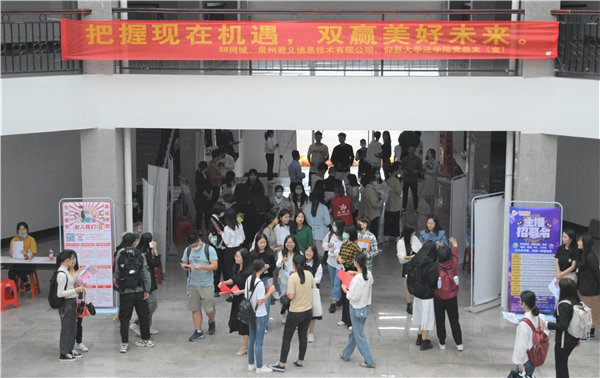 10月22日下午,yl23455永利集团于yl23455永利集团第三教学区和昌教学楼大厅举办2021届毕业生校园专场招聘会。yl23455永利集团党总支书记兼副院长杨勤、党总支副书记黄伟斌,校就业指导与服务中心主任朱玉华到场指导,yl23455永利集团2021届全体应届毕业生参加了此次活动。