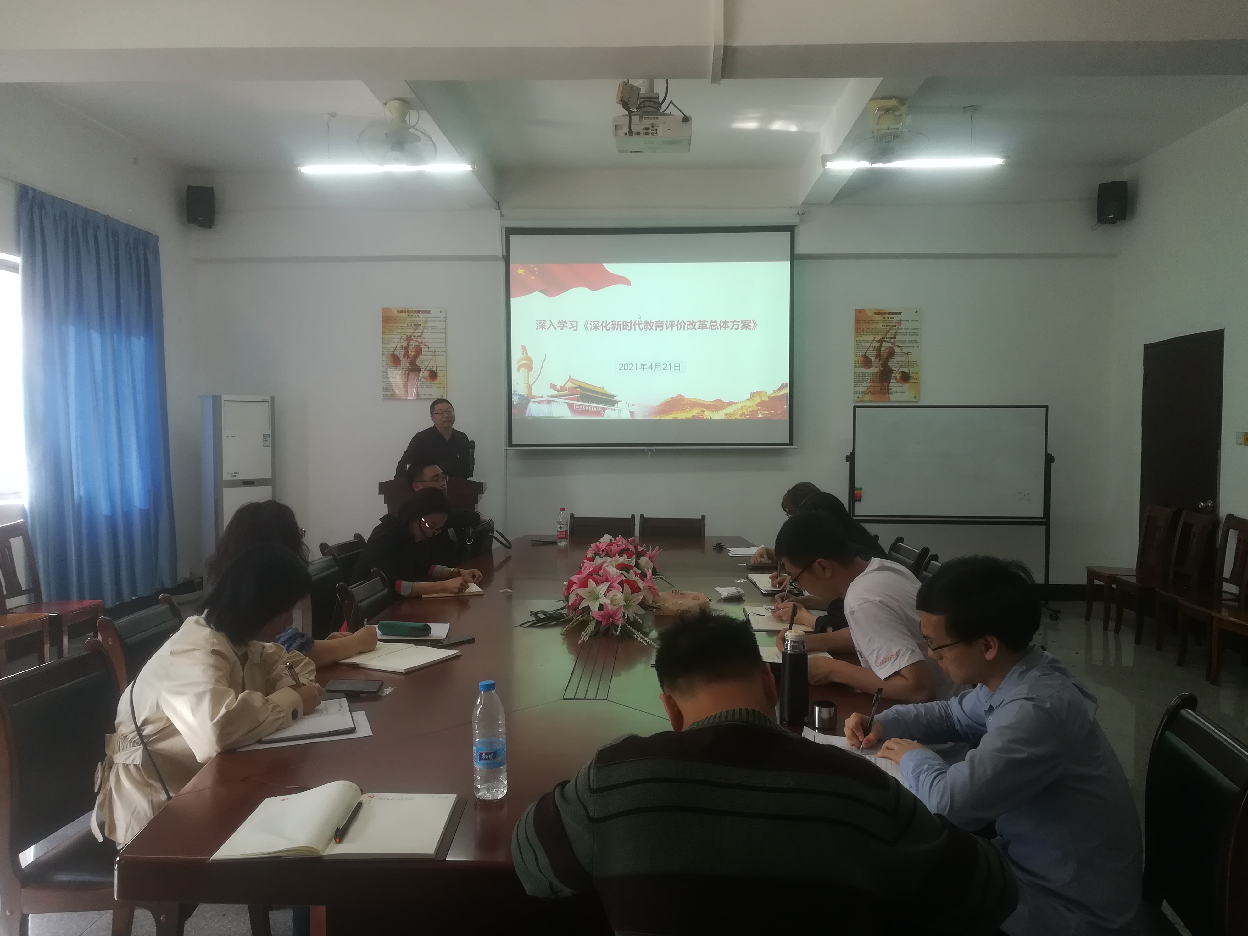 为深刻学习领会习近平总书记的重要论述,认真贯彻落实理论学习教育活动。4月21日下午,yl23455永利集团党总支在yl23455永利集团第三校区普照教学楼法律诊所召开理论中心组专题学习会,该专题学习内容由党总支理论中心组成员黄文伟老师主讲。