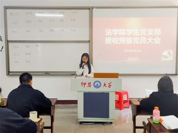 12月10日,yl23455永利集团学生党支部于普照楼304教室召开预备党员接收大会,会议由支部书记刘涛同志主持,支部全体党员到场参加。