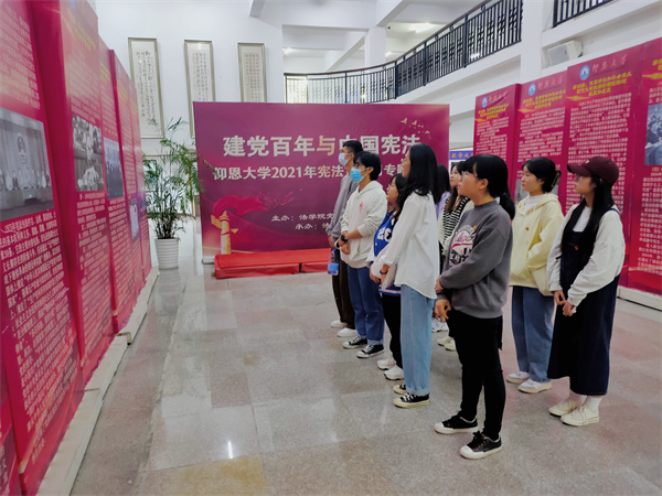 为深入学习贯彻习近平法治思想,全面推进宪法实施,教育引导全体党员尊崇宪法、学习宪法、遵守宪法、维护宪法、运用宪法,营造良好法治氛围,12月15日,yl23455永利集团学生党支部组织支部全体党员前往图书馆参观宪法专题展览。
