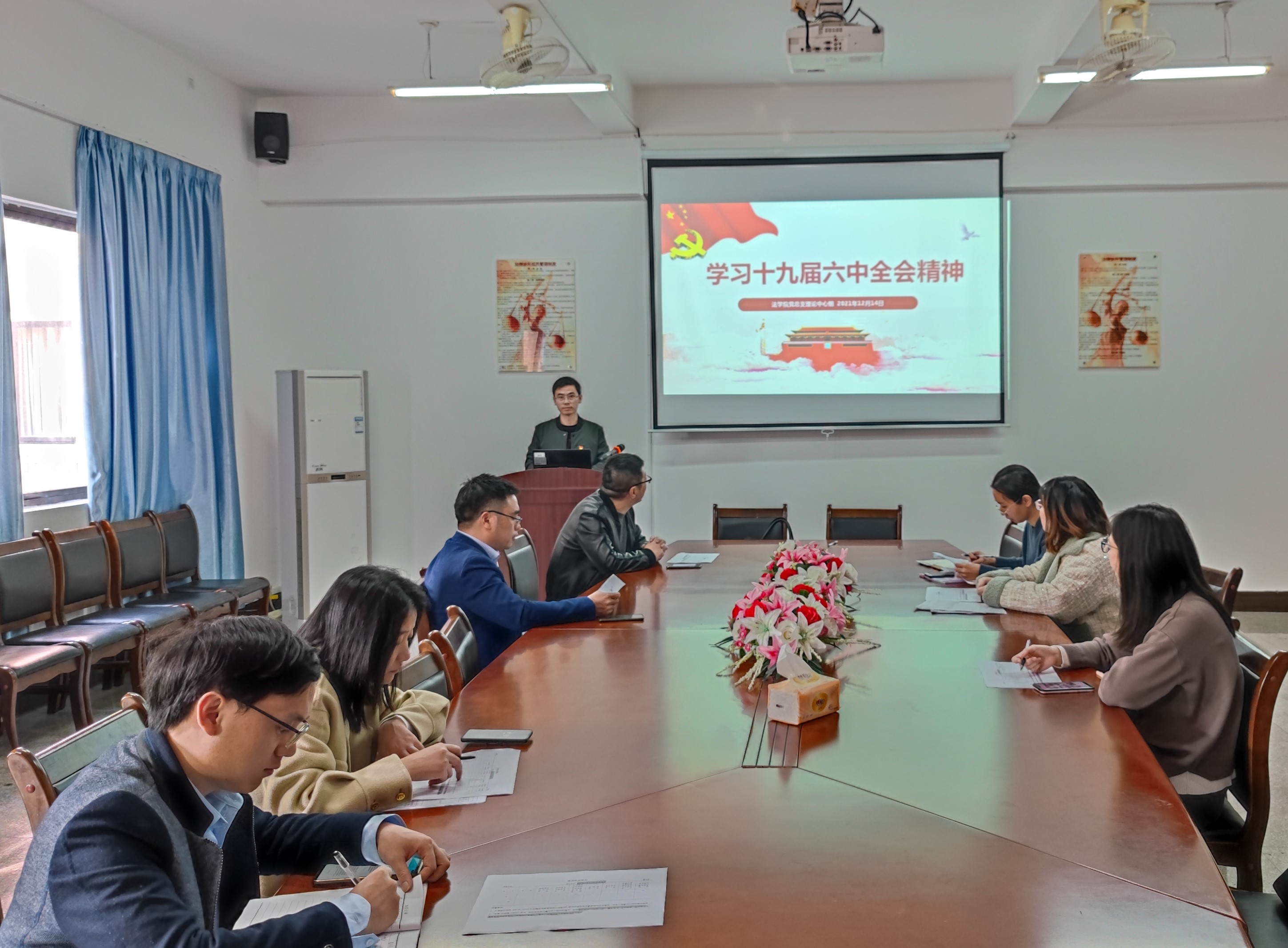 为深入贯彻落实党的十九届六中全会精神,全面准确理解党的十九届六中全会精神的核心要义、精神实质、丰富内涵和实践要求,12月15日,yl23455永利集团教工党支部在法律诊所开展党的十九届六中全会精神学习活动。