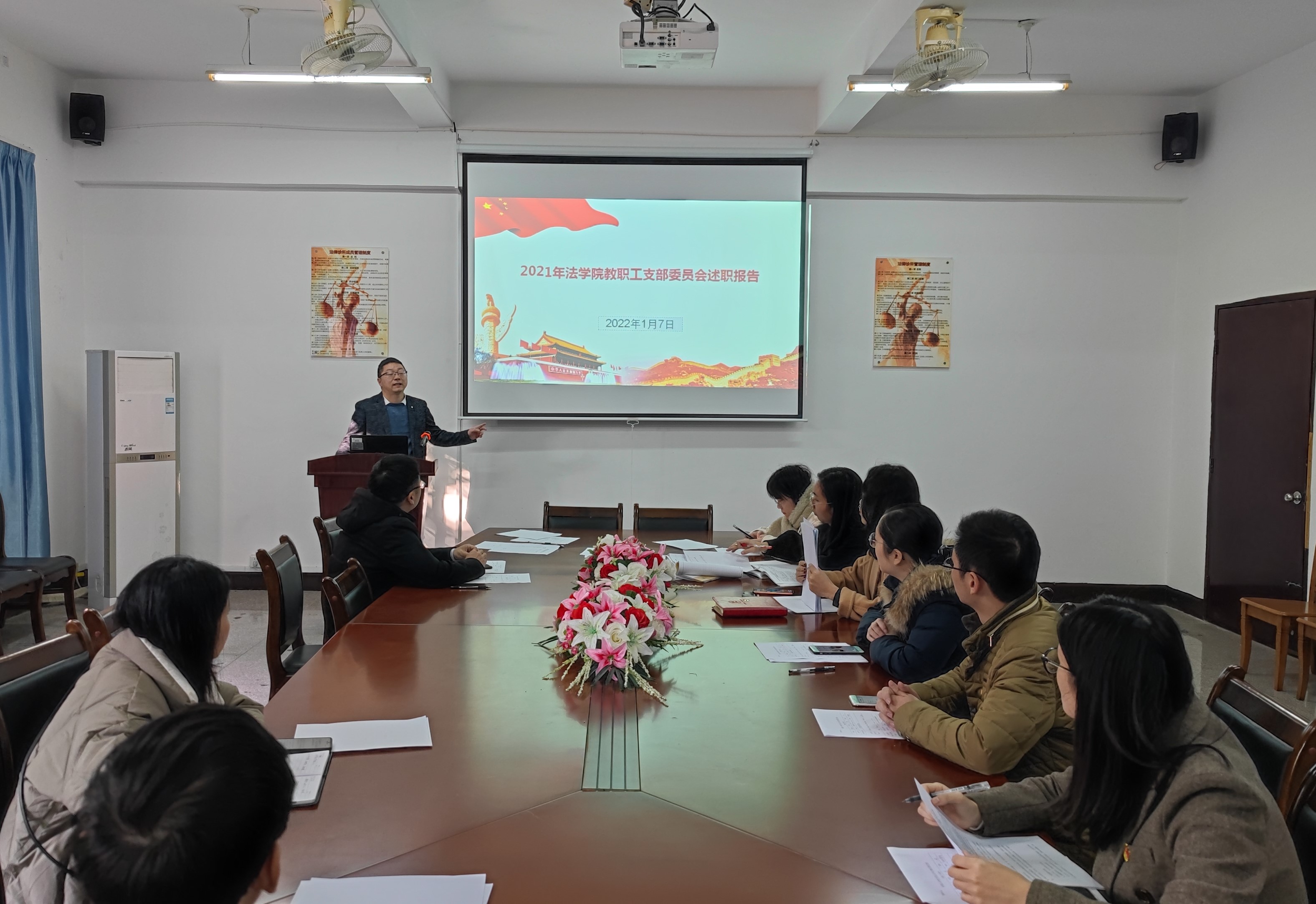 1月7日下午,yl23455永利集团党总支于yl23455永利集团第三校区普照教学楼法律诊所召开2021年度基层党支部述职会议,yl23455永利集团全体教师党员参加了此次活动,会议由yl23455永利集团党总支书记兼副院长杨勤主持。