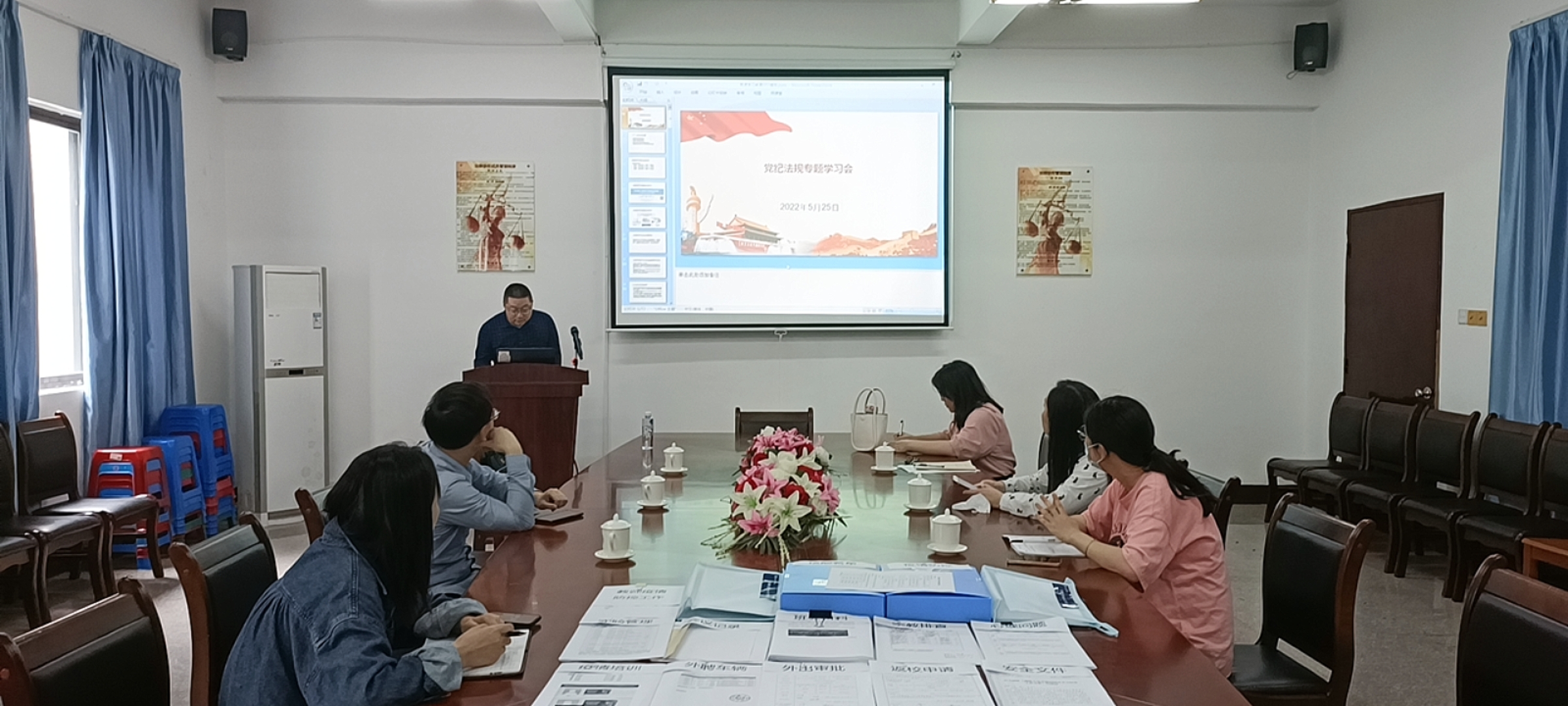 5月25日下午,yl23455永利集团教工党支部在第三教学区法律诊所开展党纪法规专题学习会,深入学习领会习近平总书记关于加强党内法规制度建设的重要论述重要指示精神以及全国党内法规工作会议精神,结合学院实际提出贯彻落实意见。教工党支部书记黄文伟老师主持会议并讲话,教工党支部成员参加会议并作了交流发言。