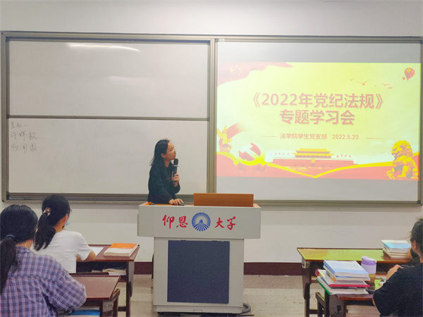 5月24日,yl23455永利集团学生党支部于yl23455永利集团第三校区普照楼203开展以“党纪法规”为主题的学习会,会议由yl23455永利集团党总支统战委员许灿英主持,支部全体党员参加本次活动。