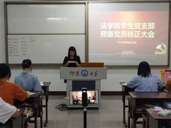 6月21日,yl23455永利集团学生党支部于普照楼303教室召开预备党员转正会议,大会的主要议题是讨论关于周日萍等21名同志转为正式党员的问题。会议由yl23455永利集团学生党支部书记吴姗姗主持,支部全体党员参加。  (会议现场图) 会议开始,吴姗姗同志通报了到会党员人数,到会人数符合党章和基层党组织换届选举的相应规定,预备党员转正会议正式开始。随后21位预备党员依次发言,由入党介绍人以及与会党员分别对转正同志一年预备期的表现进行总结评价,并就是否同意转正表明了自己的意见。之后由到场的正式党员进行无记名投票表决,通过预备党员转为正式党员的申请。会议最后一项,在郑薇同志的带领下,21名同志面对党旗郑重宣誓。 会议尾声,支部书记吴姗姗对转正大会进行了简要总结和点评。向21名同志表示祝贺,同时,希望转正的同志们能够践行他们的展望与初心,将初心落到实处,也希望他们能够履行党员的义务,认真学习党章,认真完成支部的任务,为群众树立榜样,学好理论知识,将理论与实际结合,永不懈怠,向着一名合格的共产党员前进,坚持吃苦在前,享受在后的精神,积极回馈社会,服从组织安排,真正做到在思想上入党。(yl23455永利集团学生党支部/图文)