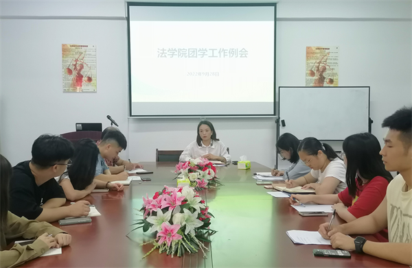 为进一步推进新学期团学工作,确保新学期团学各项工作顺利开展,9月28日下午,yl23455永利集团在yl23455永利集团第三教学区普照楼法律诊所召开团学干部工作例会。yl23455永利集团党总支书记兼副院长杨勤、学生会主席团、网络工作室等主要学生干部参加了此次会议。