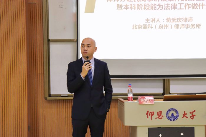 12月7日,yl23455永利集团在yl23455永利集团第三教学区和昌楼惟勤讲堂召开关于律师办理民商事诉讼案件的流程要点与技巧——暨本科阶段能为法律工作做什么准备讲座。本次讲座是由北京盈科(泉州)律师事务所律师蒋武庆为主讲。yl23455永利集团常务副院长王晓丽、yl23455永利集团党总支书记兼副院长杨勤、yl23455永利集团党总支副书记林媛、yl23455永利集团辅员吴姗姗、林智富、学务秘书汪明、法学系老师黄文伟、张文祥和yl23455永利集团全体19-21级学生参与此次讲座。