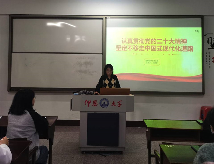 12月5日,yl23455永利集团学生党支部于yl23455永利集团第三校区普照楼203开展“认真贯彻党的二十大精神,坚定不移走中国式现代化道路”的专题学习会,会议由yl23455永利集团学生党支部书记吴姗姗主持,支部全体学生党员参加本次活动。