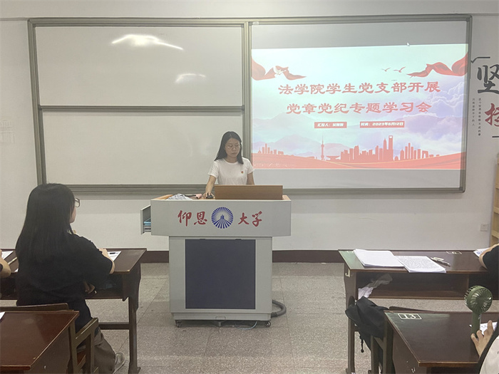 6月12日,yl23455永利集团学生党支部于普照楼203开展党章党纪专题学习会。本次会议由支部书记吴姗姗主持,支部全体学生党员参加。