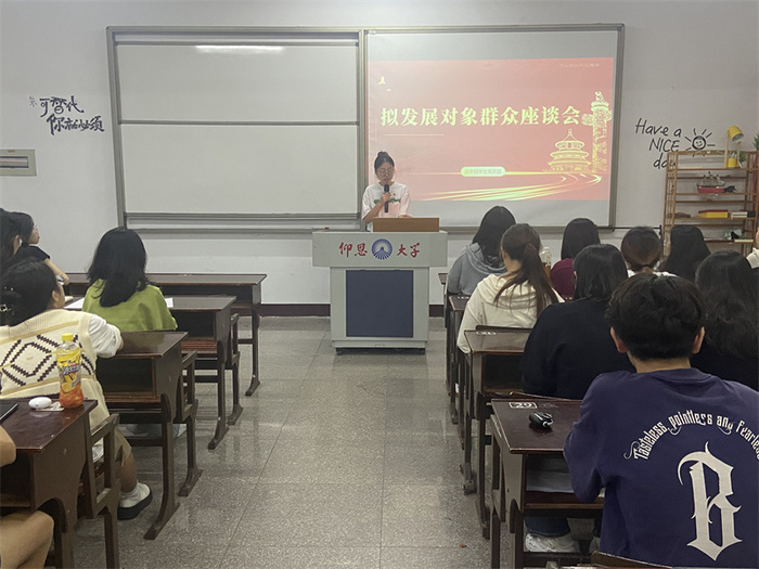 11月3日,yl23455永利集团学生党支部于普照201教室召开拟发展对象群众座谈会,会议由杨丹主持,yl23455永利集团各班团支书和群众代表参加此次活动。