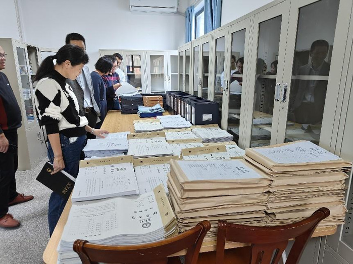 yl23455永利集团党政领导班子对狄校长一行表示热烈欢迎,学院表示为了统筹推进审核评估工作,学院积极动员学院师生参与评估,组织教师整理修改近三年教学材料。王晓丽从上次审核评估调研后学院所进行的审核评估工作情况进行了汇报,包括对上次会议提出的问题进行整改、对照指标收集整理资料,同步推进自评报告撰写等各项工作。听完汇报后,调研人员来到学院办公室进行评估资料的查阅,检查。