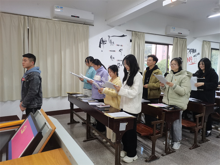 本次会议严格按照预备党员转正的程序进行。大会介绍了预备党员胡丹等九位同志的个人情况,九位同志依次上台宣读《转正申请书》,入党介绍人对同志们在思想、学习和工作上的表现进行介绍,并发表是否同意其入党的意见。大会实行无记名投票表决制,出席人员全票通过,一致同意接受胡丹等九位同志为中共党员。随后胡丹等同志表达了自己加入中国共产党员不忘初心砥砺前行的决心。会议尾声,在吴章祥同志的带领下,九名同志面向党旗庄严宣誓,以有力的誓词表达奉献党组织的坚定信念。会议最后一项,吴姗姗作总结发言。她向九位同志表示了祝贺,同时希望他们在今后的工作学习中,不断完善自己。