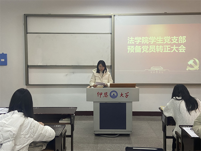 12月25日,yl23455永利集团学生党支部于普照楼301教室召开预备党员转正大会,会议由支部书记吴姗姗主持,支部全体党员到场参加。