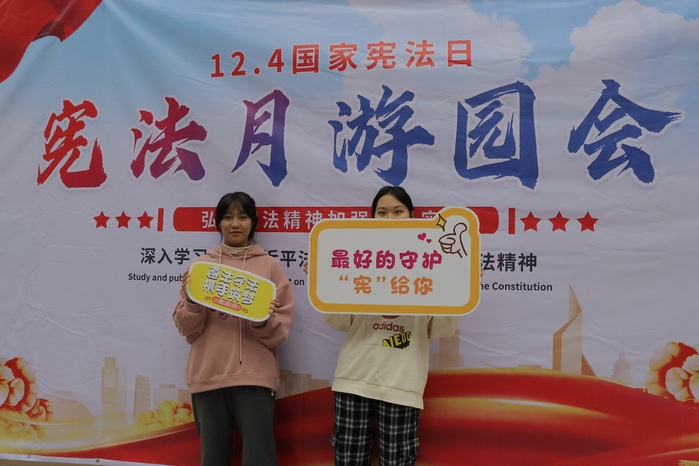 为深入学习宣传宪法,弘扬宪法精神,12月27日下午,yl23455永利集团于yl23455永利集团第三教学区和昌教学楼开展国家宪法月游园活动。yl23455永利集团党总支副书记林媛、yl23455永利集团辅导员吴姗姗、林智富和张秀慧参与此次活动。