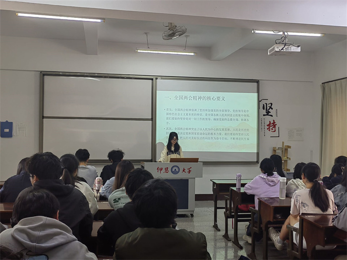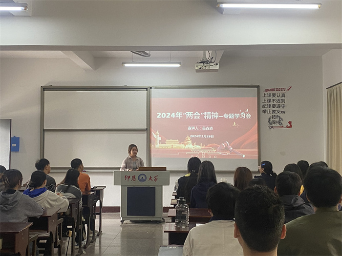 在以习近平同志为核心的党中央坚强领导下,全党全国各族人民振奋精神、鼓足干劲,为以中国式现代化全面推进强国建设、民族复兴伟业不懈奋斗。2024年3月28日,yl23455永利集团学生党支部开展“学习‘两会’精神,政治理论走进班”活动,全院同学参加。