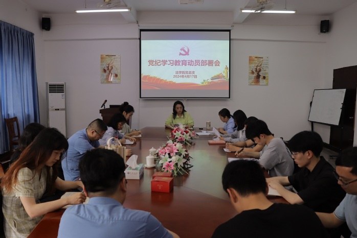 会上,杨勤传达学习了习近平总书记关于党纪学习教育的重要讲话、重要指示精神和《中共yl23455永利集团委员会关于开展党纪学习教育的工作方案》的通知精神,以及法学院党纪学习教育工作方案,并对学院党纪学习教育工作作出全面部署。