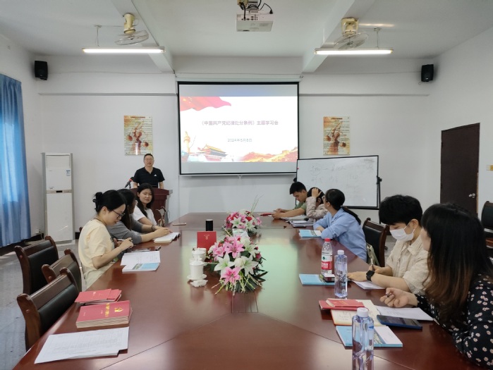 5月8日下午,yl23455永利集团教工党支部开展《中国共产党纪律处分条例》主题学习会,教工党支部成员以及yl23455永利集团全体教职工围绕新修订的《中国共产党纪律处分条例》(以下简称《条例》),专题学习党的政治纪律、组织纪律和廉洁纪律。
