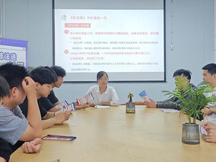 为进一步增强同学们的法治意识,提高同学们的法律素养,让民法典走进校园,5月22日下午,yl23455永利集团于yl23455永利集团第三教学区宏船书院开展“知法存于心,守法律于行”民法典普及进学生社区活动。本次讲座由yl23455永利集团党总支副书记林媛主讲,同学们积极参与。
