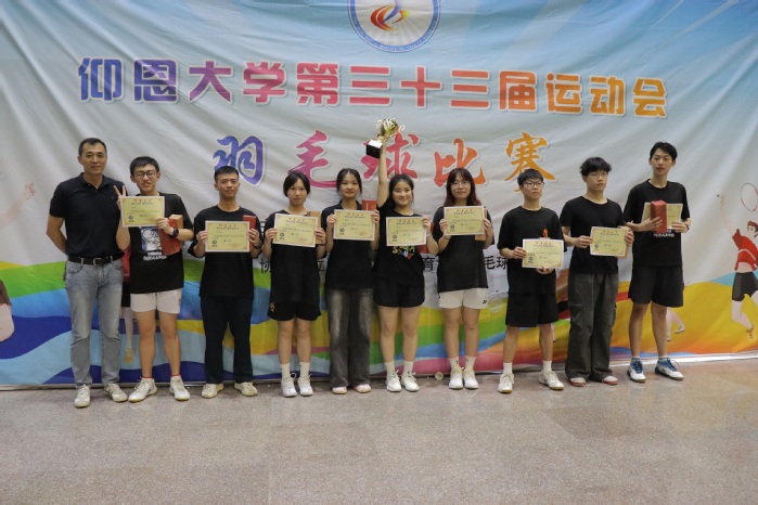 本次比赛涵盖了女单、男单、女双、男双多个项目,为参赛选手们提供了展示羽毛球技艺的广阔舞台。在女单项目中,选手们更注重技巧和细腻度,凭借灵活的移动和精准的击球,不断给对手制造压力。男单则更加注意力量和速度的对决,选手们凭借强大的爆发和精准的扣杀,赢得了观众的阵阵掌声。在双打项目中,选手们之间的默契配合成为了比赛的关键,他们通过精妙的战术安排和默契的传球,成功压制了对手,展现了出色的团队协作能力。最终我系取得了第一名的好成绩。