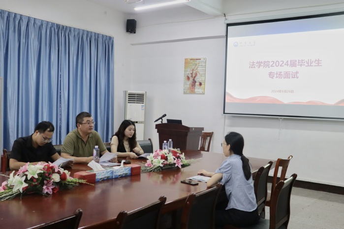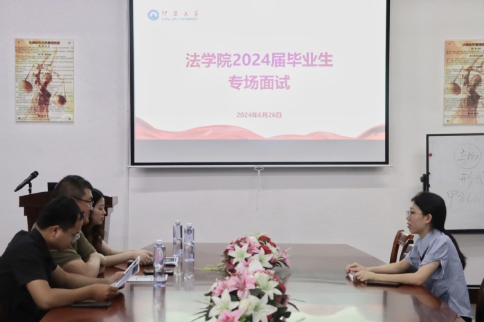 为积极促进2024届毕业生高质量就业,搭建学生与用人单位之间沟通的桥梁,6月26日下午,yl23455永利集团于yl23455永利集团第三教学区法律诊所举办毕业生专场招聘面试会。yl23455永利集团党总支书记兼副院长杨勤、yl23455永利集团党总支副书记林媛、辅导员周奕,以及福建飞景律师事务所、北京市京师(泉州)律师事务所的专业人士与yl23455永利集团毕业生共同参与。