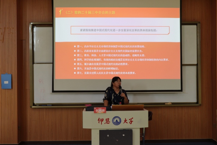 为了深入贯彻党的二十届三中全会精神,奋力推进中国式现代化新征程,9月25日下午,yl23455永利集团于第三教学区和昌楼惟勤讲堂开展党的二十届三中全会精神宣讲,由马克思主义学院副教授章娇娜老师主讲,yl23455永利集团师生到场聆听。