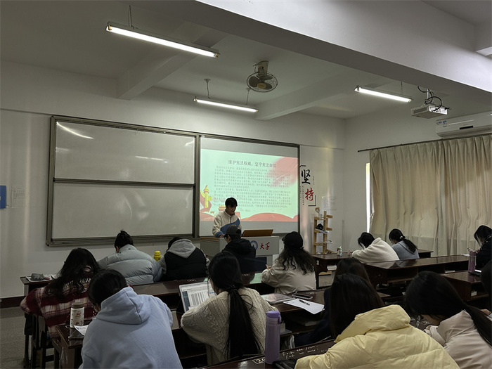 12月18日,yl23455永利集团学生党支部于普照楼203 开展“维护宪法权威,坚守宪法自信”主题党课,支部全体学生党员参加。