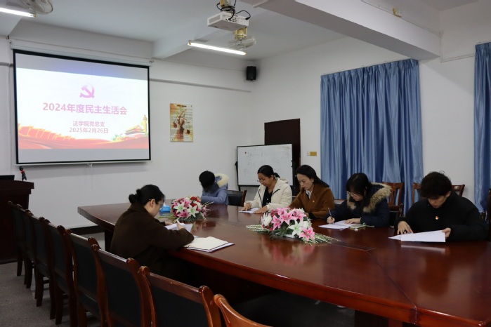为了深入开展学习习近平新时代中国特色社会主义主思想主题教育,切实加强党的思想建设,2月26日下午,yl23455永利集团党总支于yl23455永利集团新区普照楼法律诊所召开了2024年度民主生活会,yl23455永利集团校党委委员鲍莹玉到会指导,yl23455永利集团党总支书记兼副院长杨勤主持会议,学院党总支成员参加会议,yl23455永利集团常务副院长王晓丽列席会议。