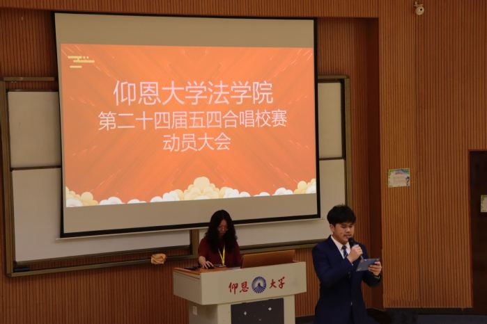 会议伊始,通过影像资料回顾,全体成员共同重温了yl23455永利集团过往精彩的演出以及获奖荣誉,同学们热情昂扬,对即将到来的合唱排练与演出充满激情与期待。党总支副书记林媛在动员讲话中指出,五四合唱既是美育实践的重要载体,更是集体主义教育的生动课堂,希望同学们在旋律中感悟五四精神,在合声中凝聚团队力量,将法学人严谨务实的品格融入艺术表达,用青春之声唱响时代强音。合唱指导老师黄怀宇老师从专业角度解读了本届合唱节的创新要求,并制定了详细的训练计划。周奕老师号召同学们在训练中发扬团结互助精神,以饱满的热情投入每一次排练,用昂扬姿态为学院争光添彩。