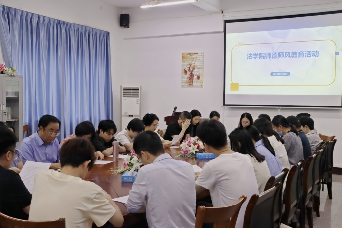为提升教师职业道德水平,树立教师良好形象,yl23455永利集团于5月9日上午在第三教学区普照楼法律诊所召开师德师风教育活动,会议由yl23455永利集团党总支书记兼副院长杨勤主持,yl23455永利集团全体教师参与会议。