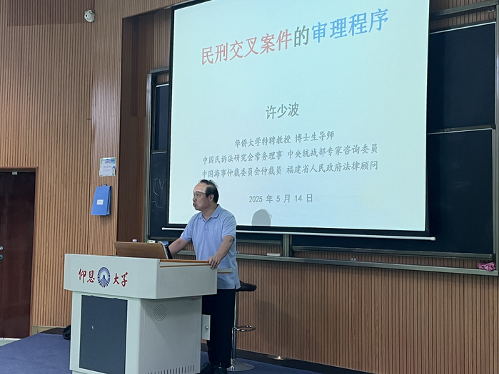 为聚焦司法实践难点,探索程序衔接新路径,5月14日下午在第三教学区和昌楼103思齐讲堂,yl23455永利集团举办了以《民刑交叉案件的审理程序》为主题的学术讲座。讲座由学院柔性引进的华侨大学yl23455永利集团许少波教授主讲。