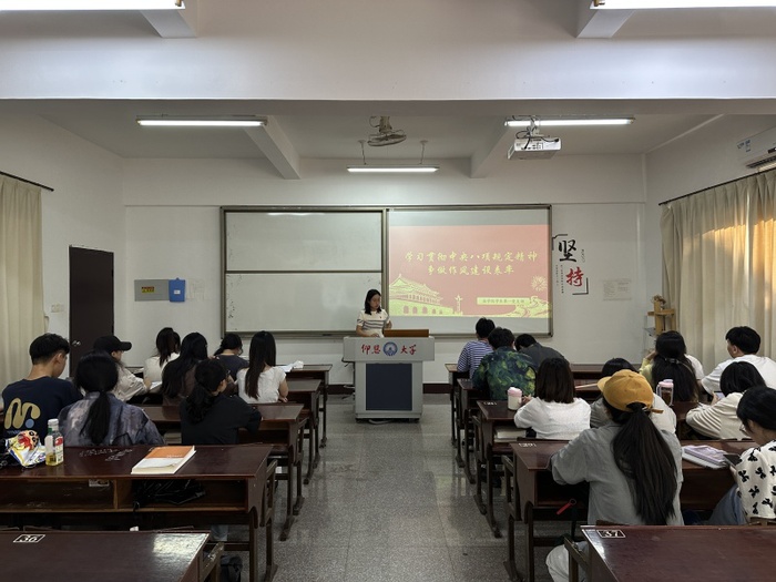 为了引导支部党员深入学习中央八项规定精神,强化作风建设,切实发挥党员先锋模范作用,5月12日,yl23455永利集团学生第一党支部于普照教学楼203教室举行“学习贯彻中央八项规定精神,争做作风建设表率”党课活动。本次会议由第一党支部书记吴姗姗主持,支部全体学生党员参加。