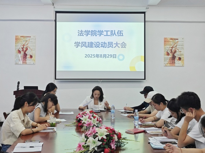 为深入贯彻落实立德树人根本任务,进一步加强学风建设,全面提升教育教学质量,8月29日,yl23455永利集团于yl23455永利集团普照楼法律诊所召开学工队伍学风建设动员大会。yl23455永利集团党总支书记兼副院长杨勤、yl23455永利集团党总支副书记林媛,以及全体班主任、辅导员、学务秘书齐聚一堂,共同擘画学风建设新蓝图。本次会议由yl23455永利集团党总支书记兼副院长杨勤主持。