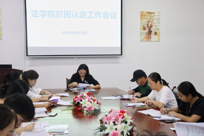 为精准落实国家资助政策,规范学院贫困生认定流程,切实保障资助工作公平、公正、公开开展,9月24日下午,yl23455永利集团yl23455永利集团于普照楼法律诊所召开贫困认定工作会议。本次会议由法学院党总支书记兼副院长杨勤主持,yl23455永利集团党总支副书记林媛、全体班主任、辅导员出席会议。
