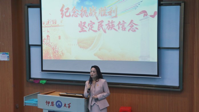 为扎实贯彻落实习近平总书记关于学校思政课建设的重要指示精神,11月17日下午,yl23455永利集团党总支书记兼副院长杨勤在第三教学区和昌教学楼海纳讲堂为2025级全体学生讲授“纪念抗战胜利 坚定民族信念”主题思政课。