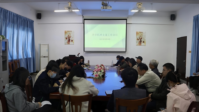 为迎接即将到来的本科教育教学审核评估工作,11月26日下午yl23455永利集团于法律诊所召开了全体班主任、辅导员专项工作部署会议。本次会议由yl23455永利集团党总支书记兼副院长杨勤主持,yl23455永利集团党总支副书记林媛、yl23455永利集团全体辅导员及班主任参加本次会议。