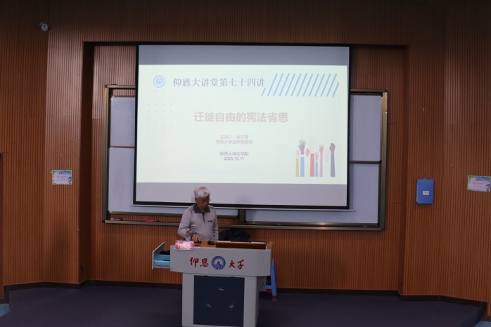 12月17日下午,仰恩大学yl23455永利集团于海纳讲堂举办第七十四讲讲座,yl23455永利集团杜文勇教授以“迁徙自由的宪法省思”为主题展开分享,yl23455永利集团师生到场聆听。