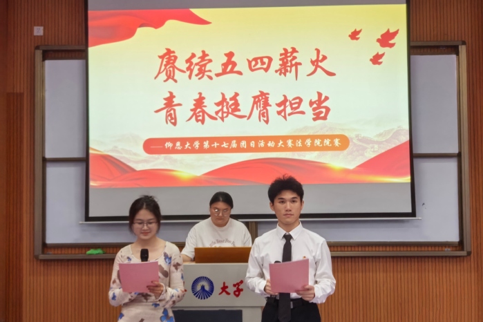 为深入学习贯彻习近平新时代中国特色社会主义思想,全面落实共青团基层组织建设要求,进一步增强法学院各团支部的凝聚力、向心力与战斗力。4月22日下午,yl23455永利集团于yl23455永利集团和昌教学楼博雅讲堂开展“赓续五四薪火,青春挺膺担当”第十七届团日活动大赛。本次大赛由yl23455永利集团党总支书记兼副院长杨勤、yl23455永利集团党总支副书记林媛、yl23455永利集团全体辅导员及专任教师任梦雪担任评委,23级至25级共10支团支部队伍参加比赛。